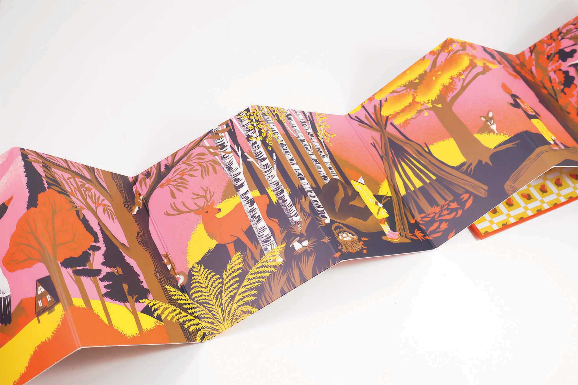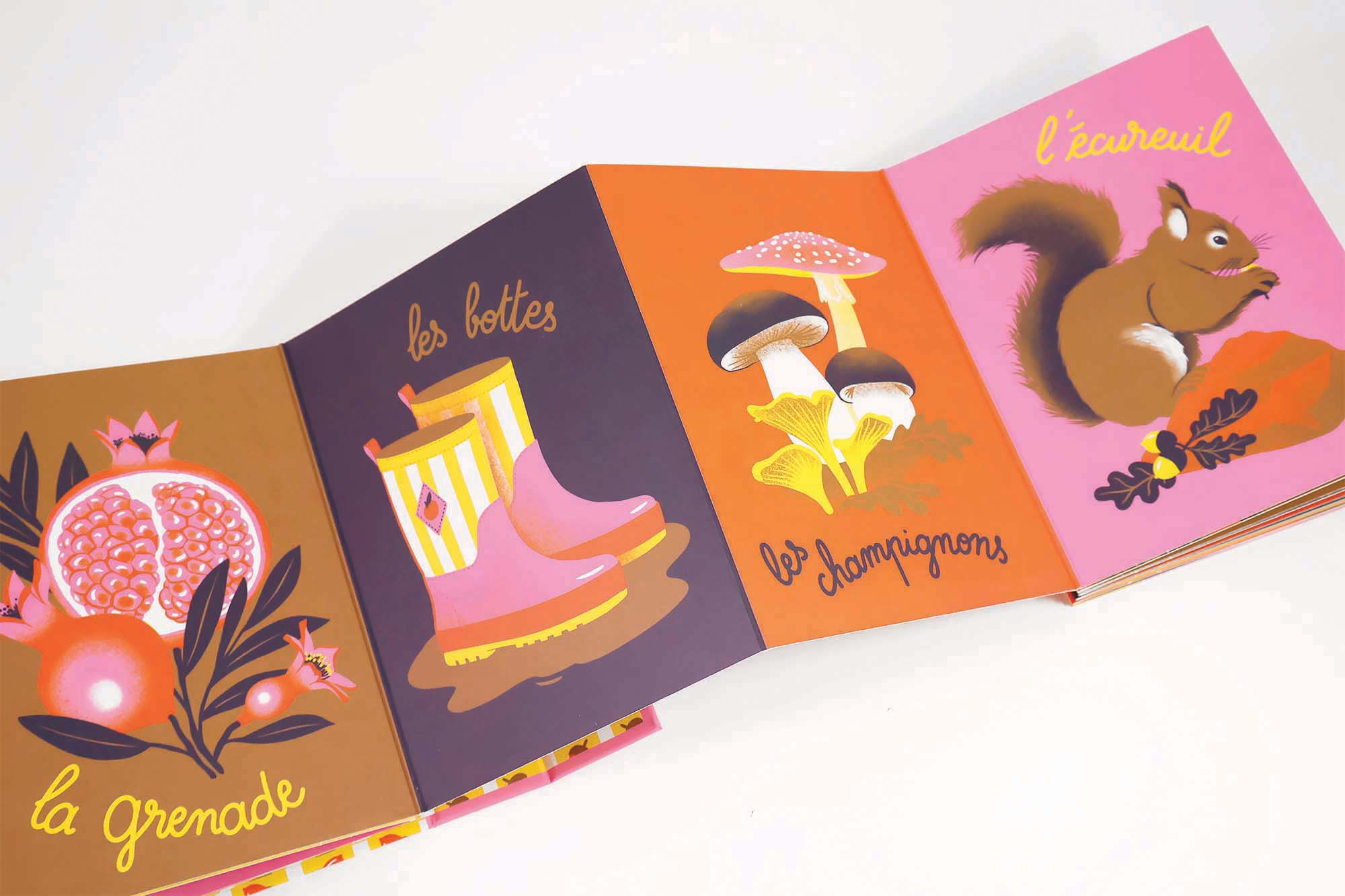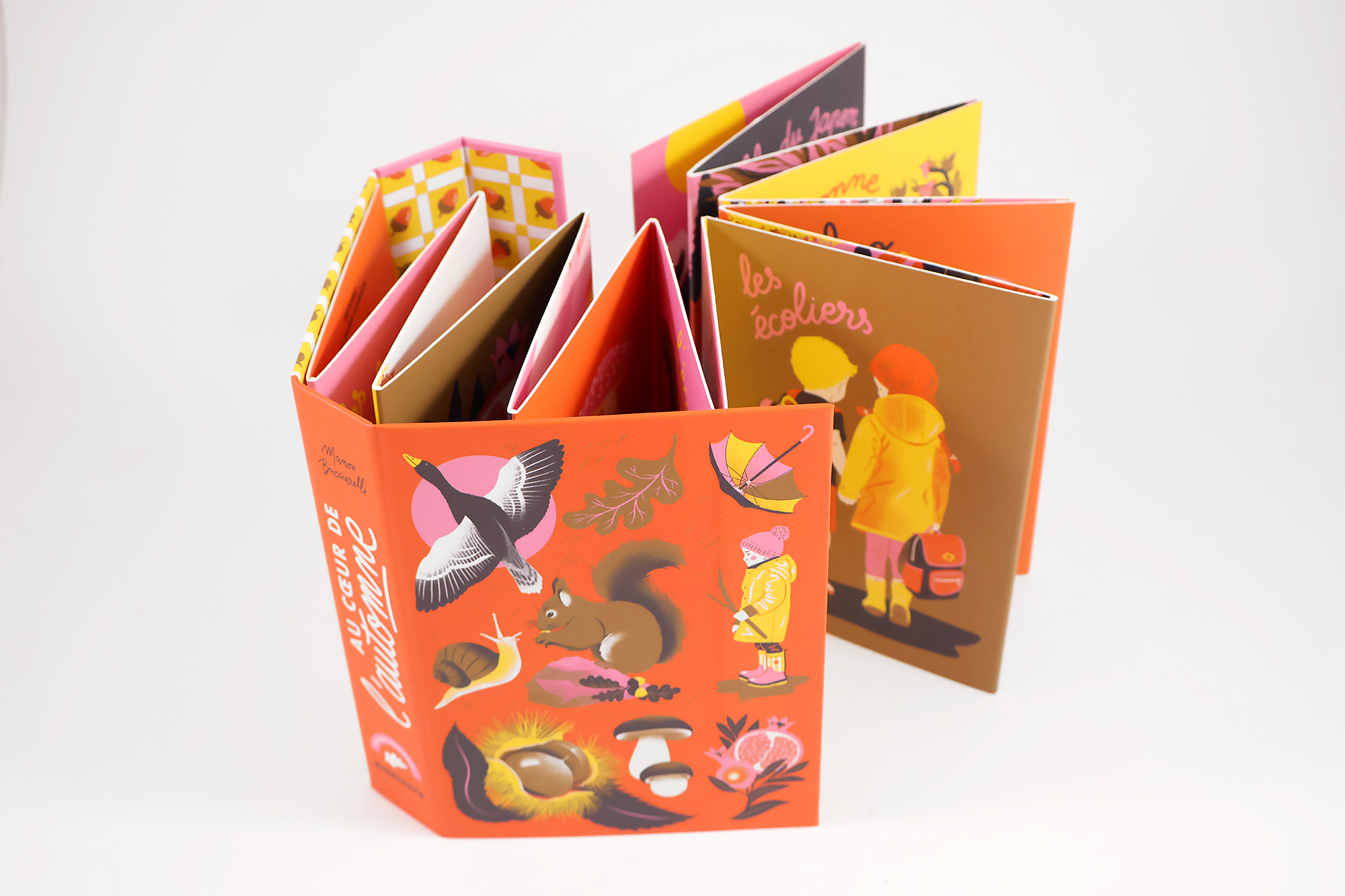 « Au cœur de l’automne » est le premier de quatre imagiers accordéon sur les saisons.